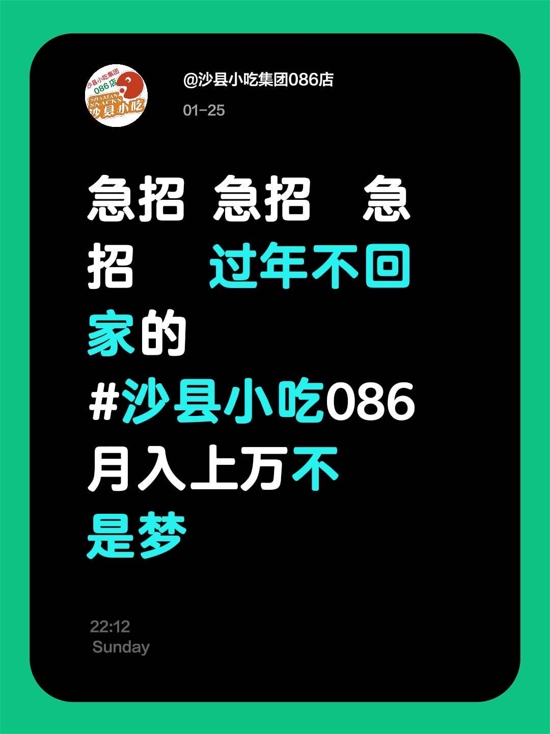 杭州沙县小吃招过年工