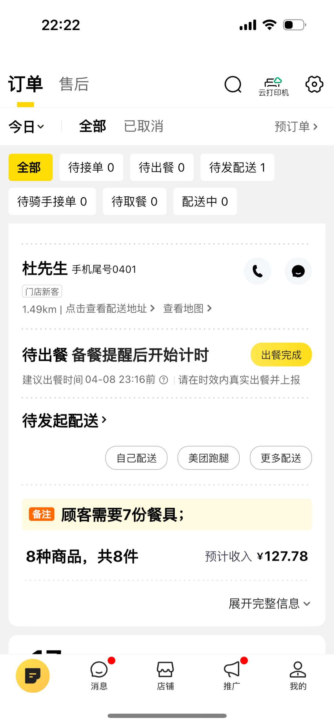 - 外卖情况:有