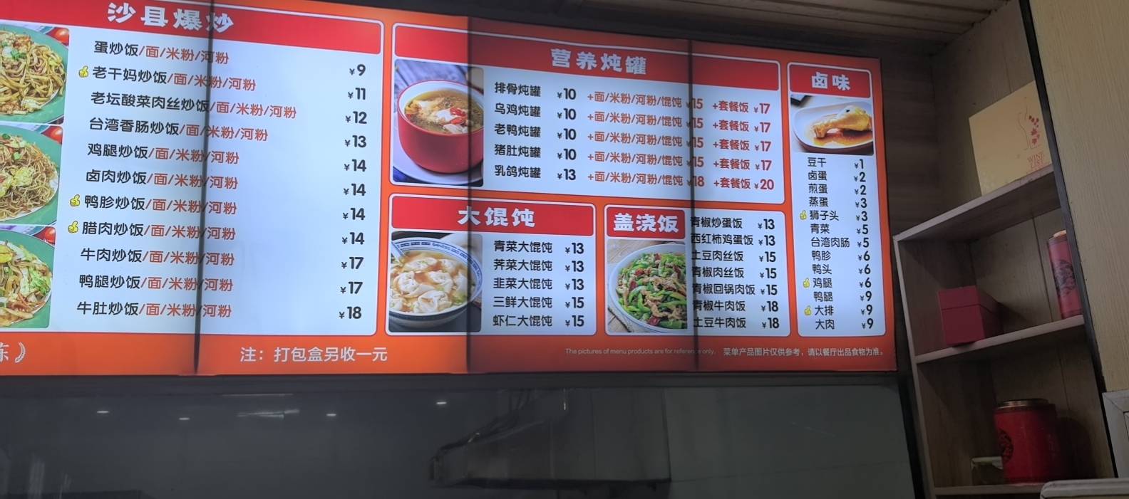 盖浇饭,东西简单。年龄30到45岁工资7500元12小时连班