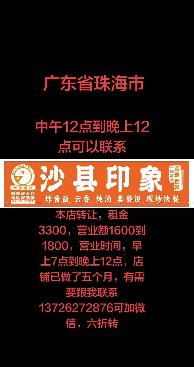 中介勿扰广东佛山顺德北滘15年老沙县,租金2280,水8,电1.2 营业额1200左右,做法超级简单,接手既营业!!!合同4年,转3.8个,电话13630053830